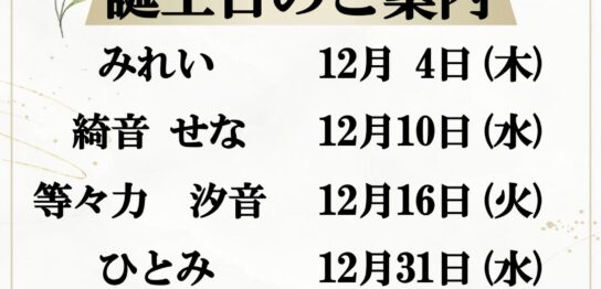 12月 バースデー・店休日のお知らせ