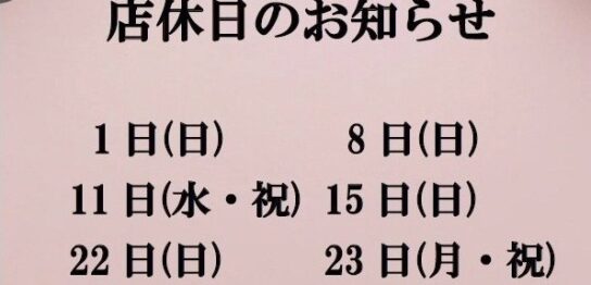 2月店休日のお知らせ