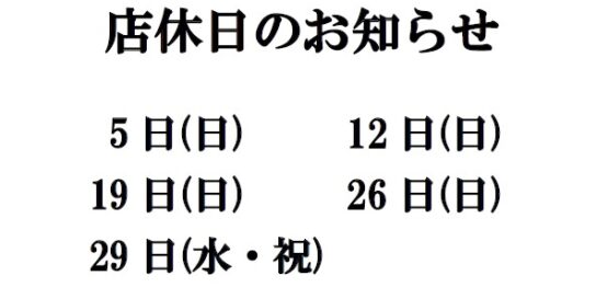 4月店休日のお知らせ