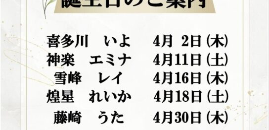 4月 バースデーのお知らせ