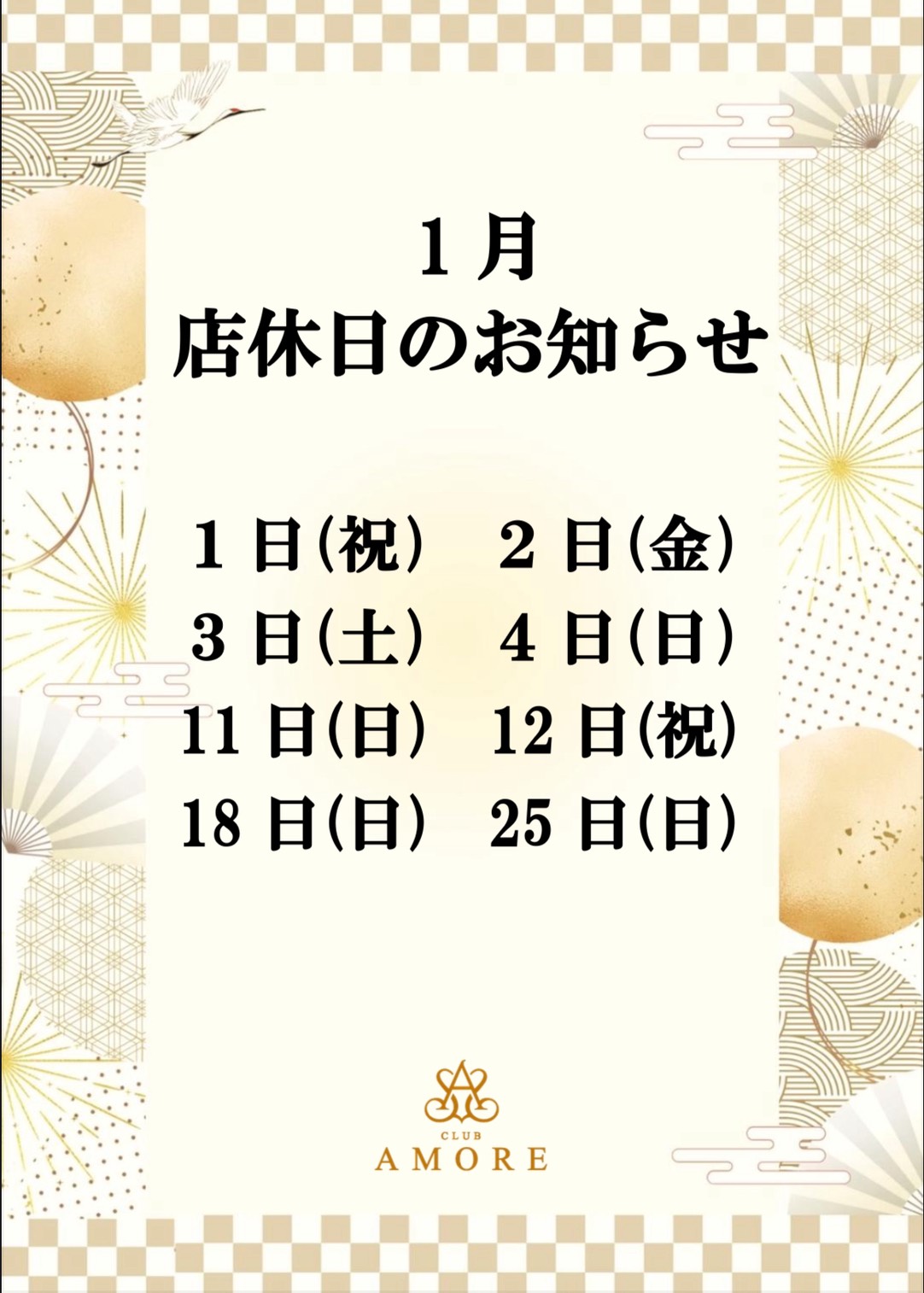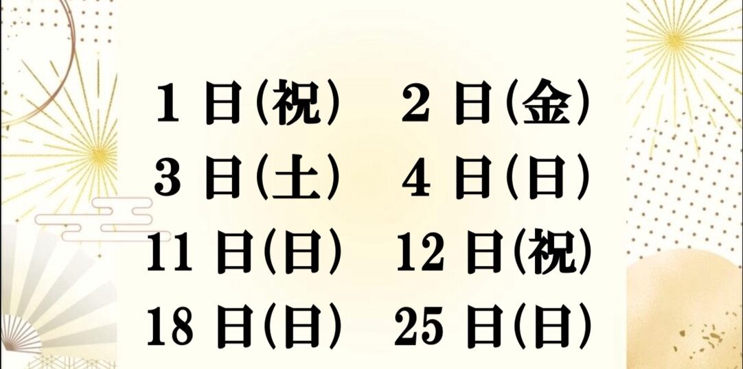 1月店休日のお知らせ