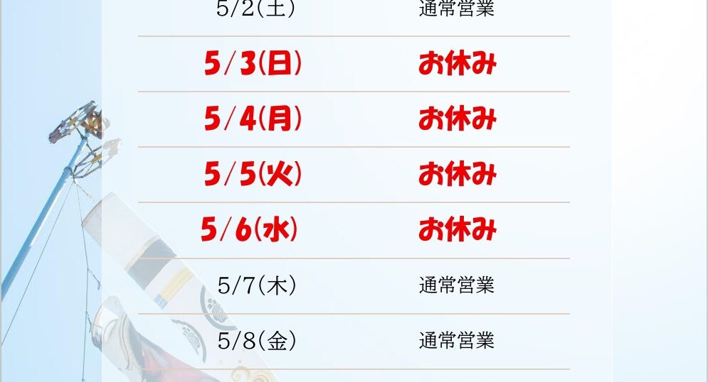 3. GW 店休日のお知らせ